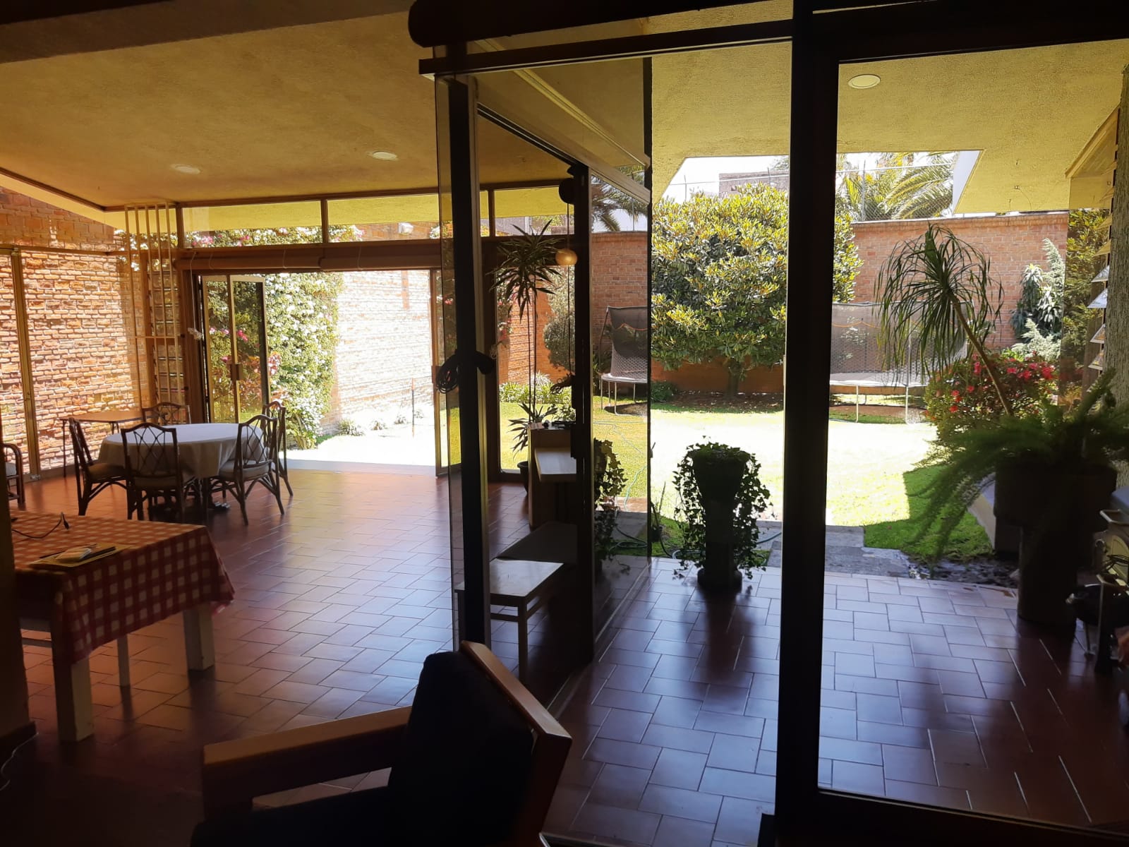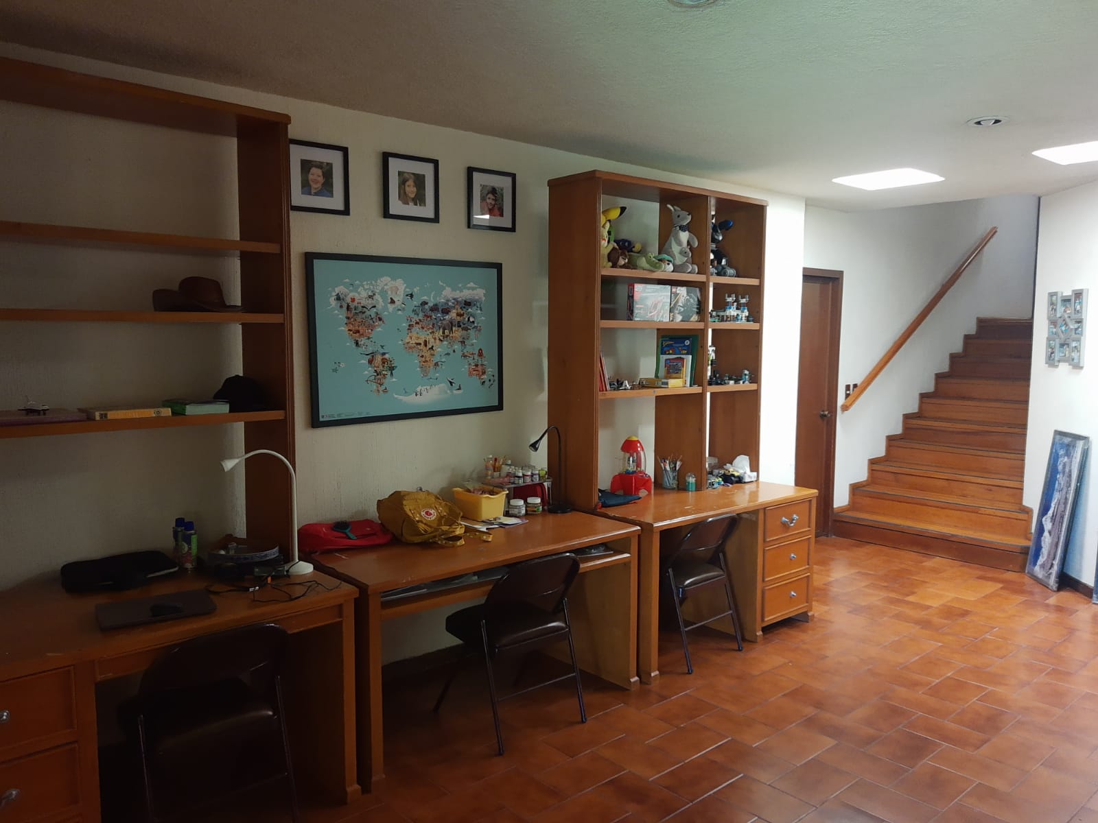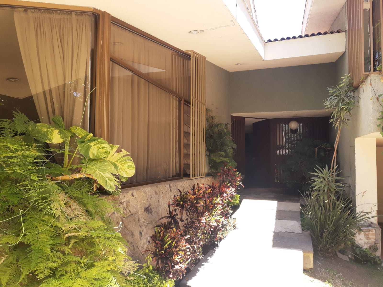 Excelente casa ideal para familia grande, notarías u oficinas privadas, en la cochera tiene cuarto para el mozo con baño y bodega, espacio para 3 autos techado y 5 sin techo dentro del área enrejada. En la servidumbre frontal, tiene espacio para estacionar 8 autos, cuenta con una servidumbre frontal de 500 m2, con 20 m de frente y 25 de fondo, con jardín, en planta baja tiene un hall de ingreso con medio baño, sala, comedor, cocina, escalera de servicio, antecomedor, área de lavado y planchado, patio, estudio, sala de TV, y una recámara principal con walking closet y baño. En planta alta, se encuentran 2 recámaras, cada una con closet, vestidor y baño, además de un cuarto de servicio con baño, la casa también cuenta con una servidumbre lateral para acceder al jardín posterior.
